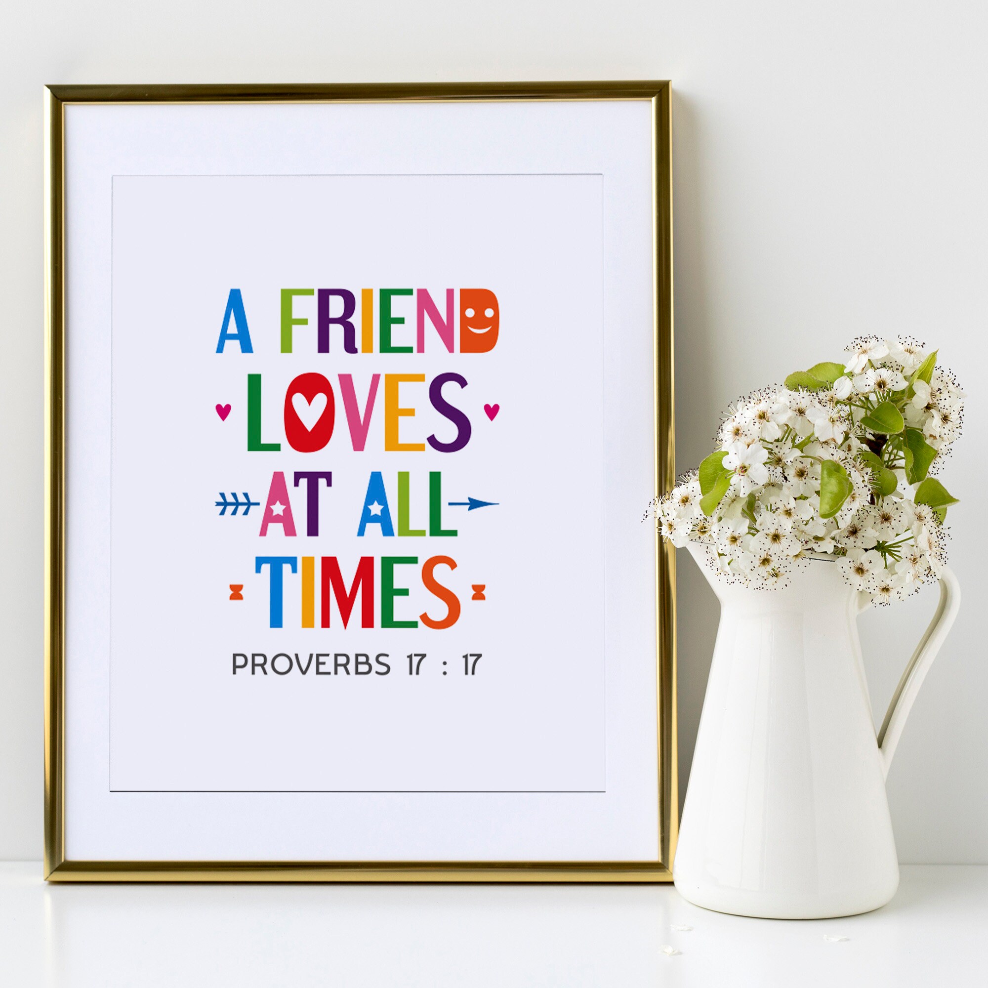 A Friend Loves At All Times Proverbs 17 17 Printable Wall Etsy